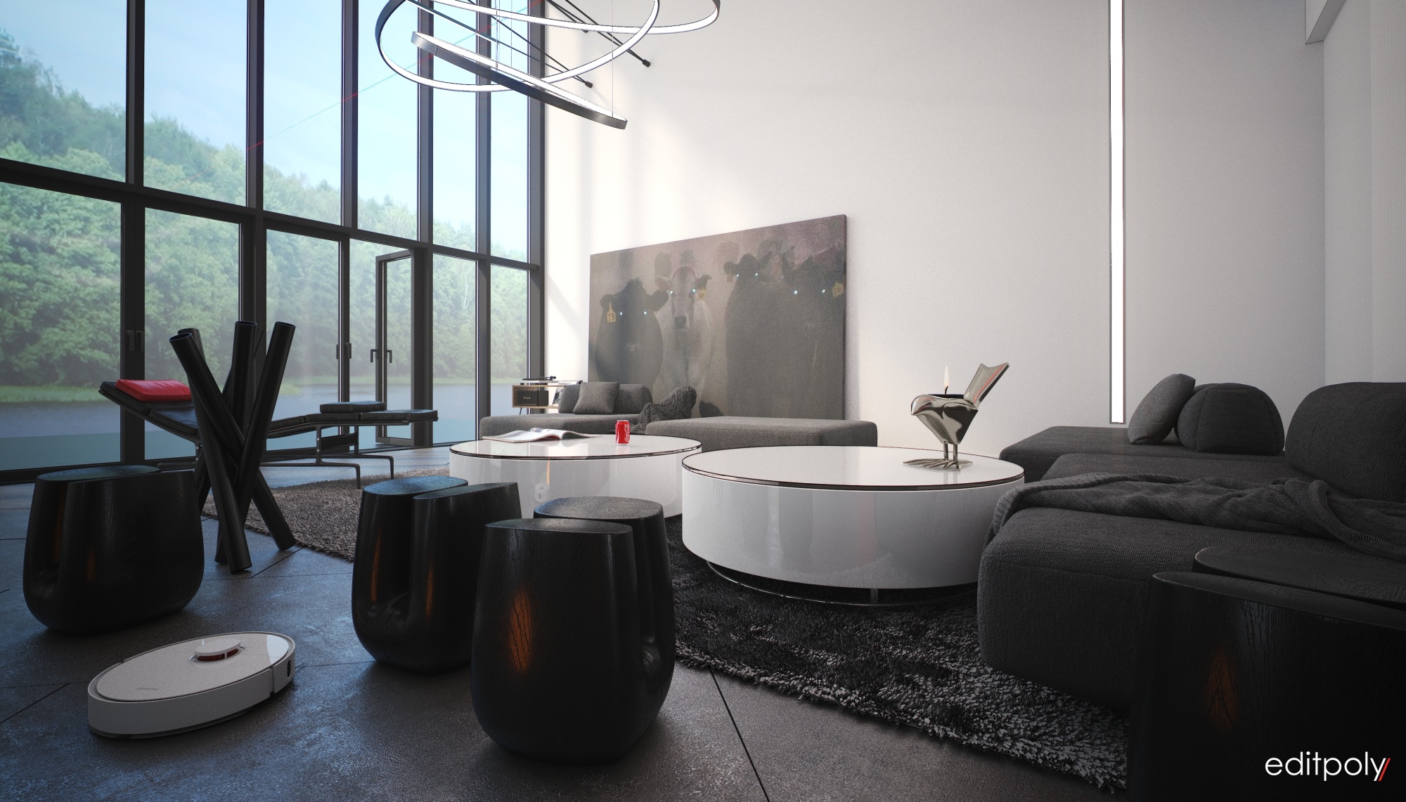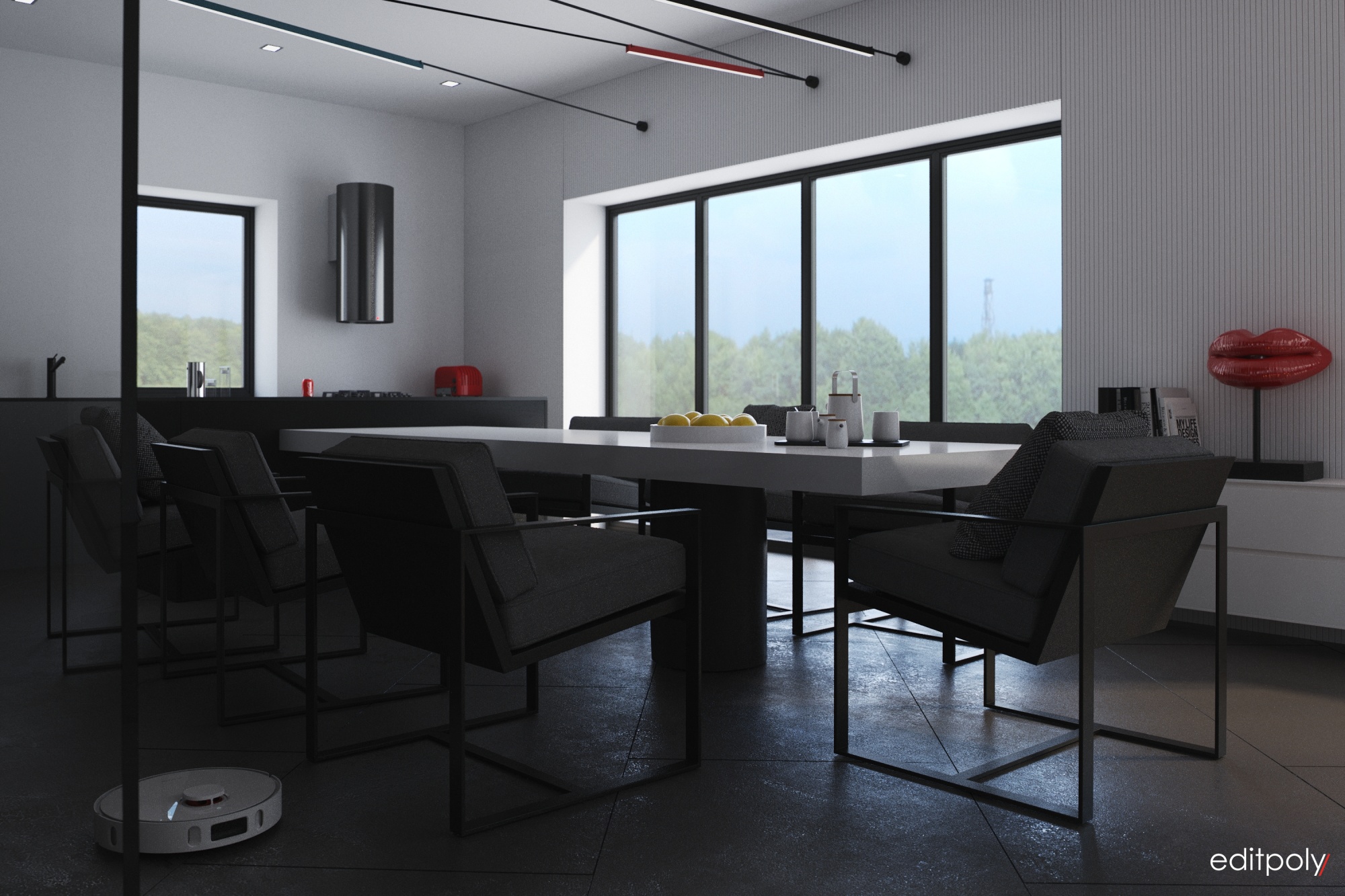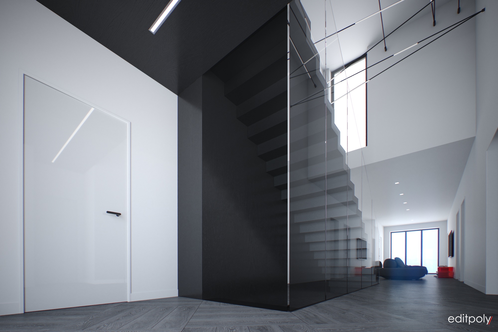 Разработка концепции, моделирование и 3d визуализация интерьера загородного дома в современном стиле