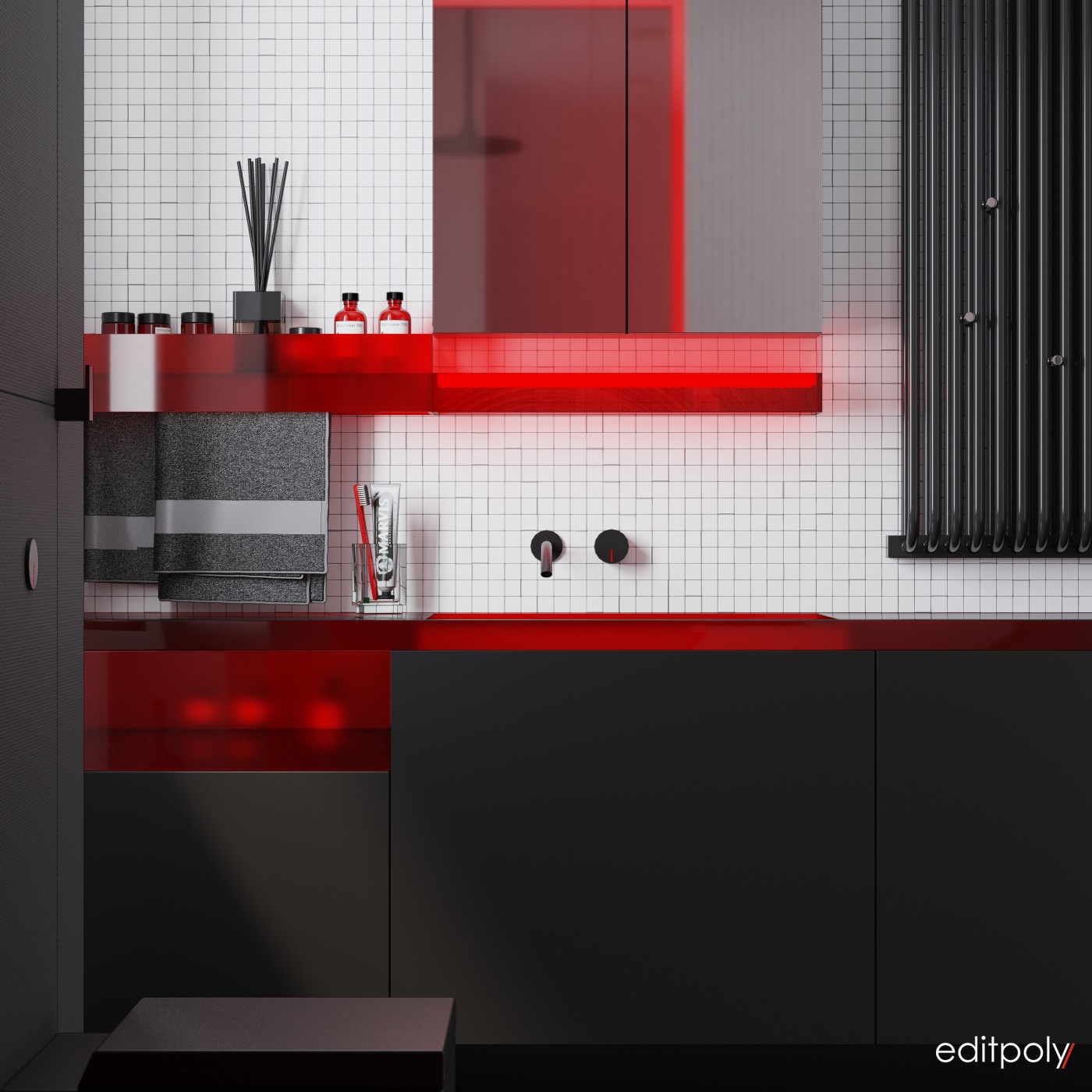 Разработка концепции и 3d визуализация интерьера гостевого туалета в минималистичном стиле с участием сантехники от итальянской фабрики Rexa
