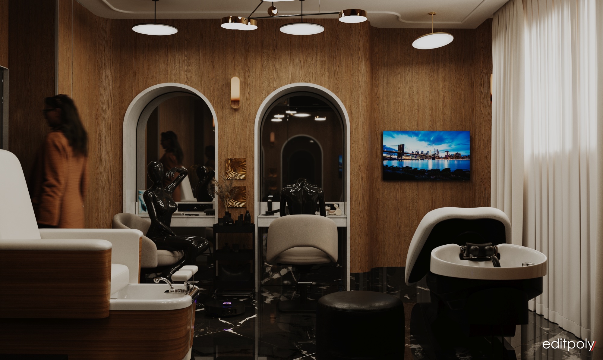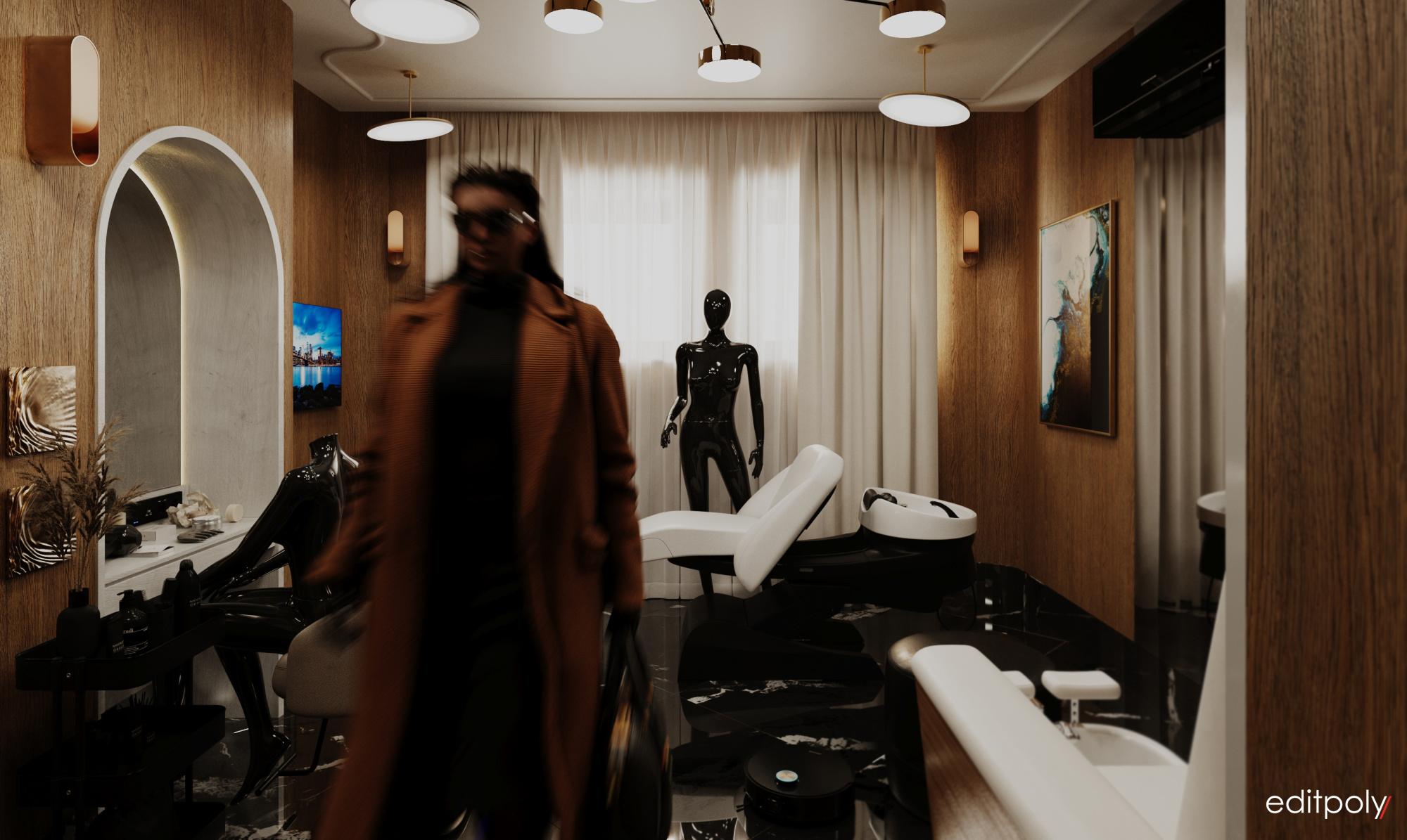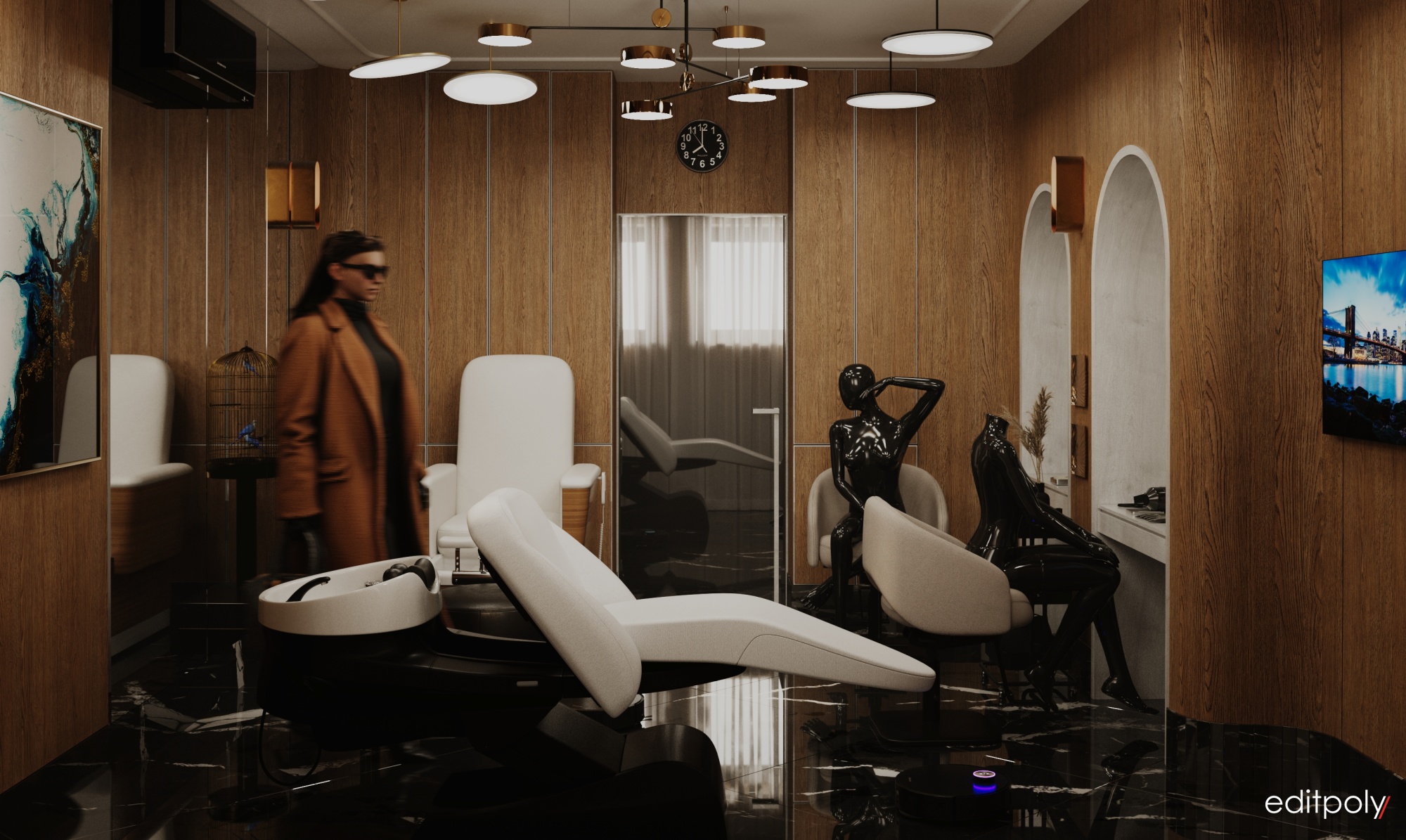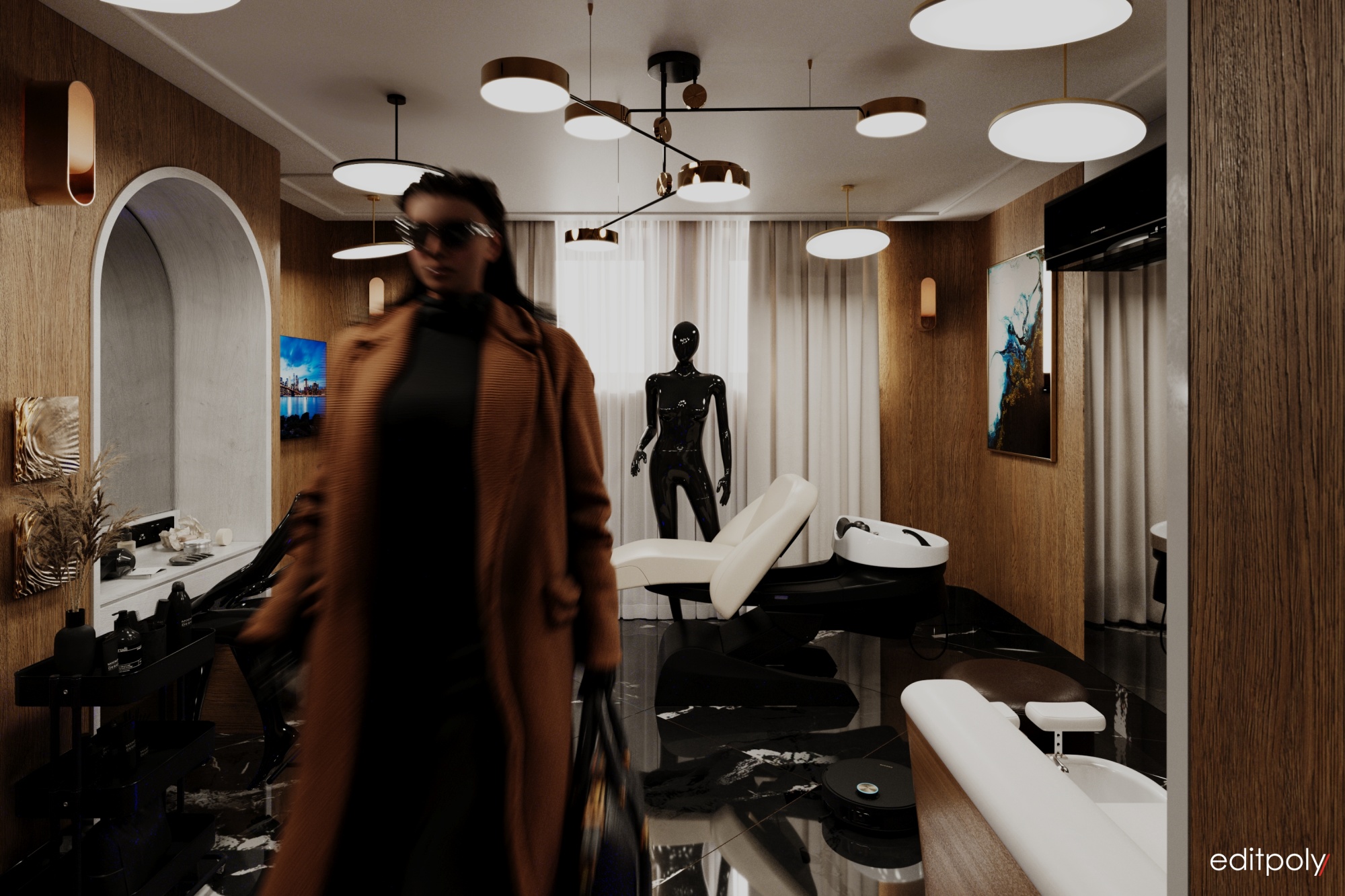 Разработка концепции, моделирование и 3d визуализация интерьера парикмахерской в современном стиле