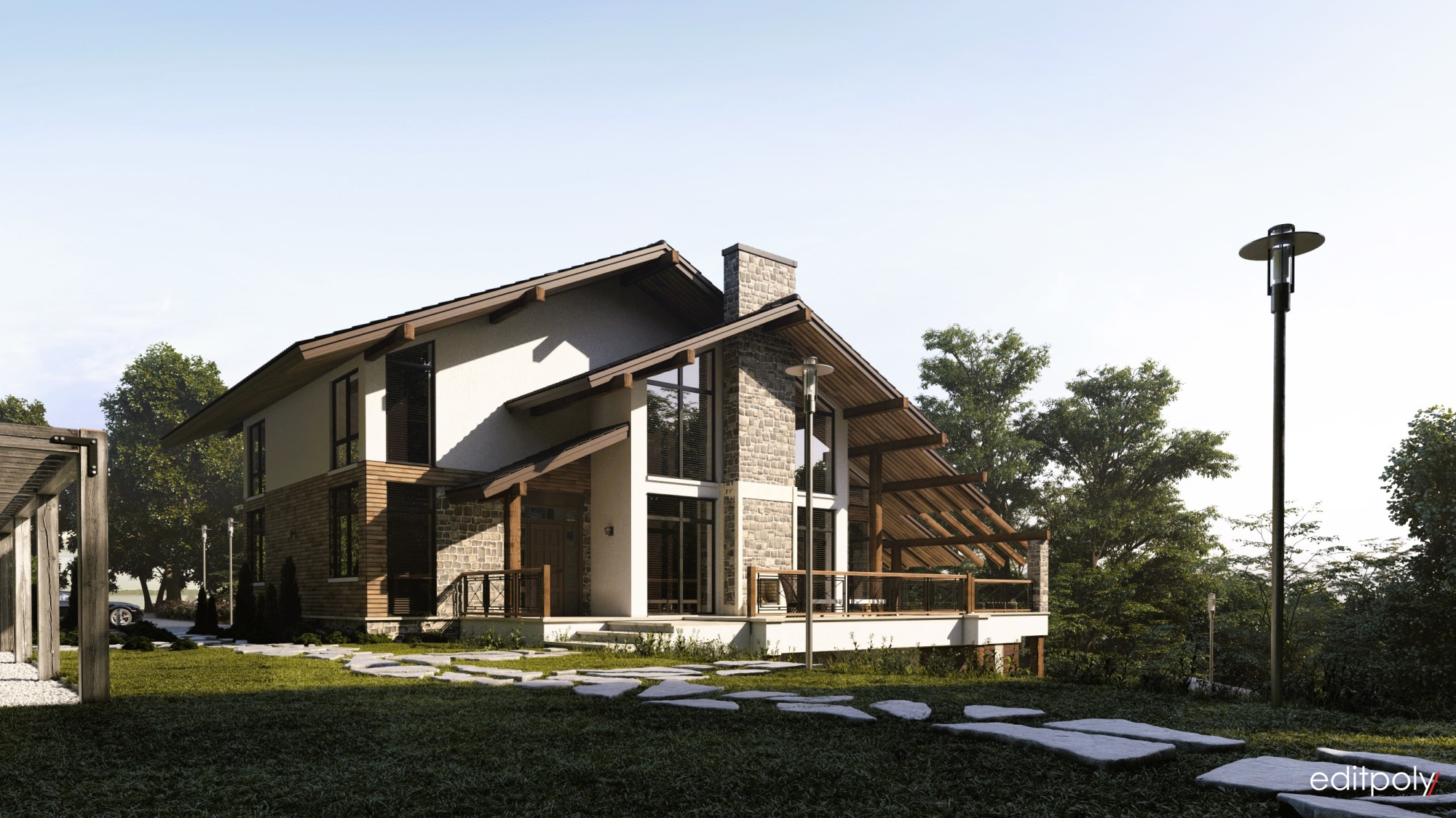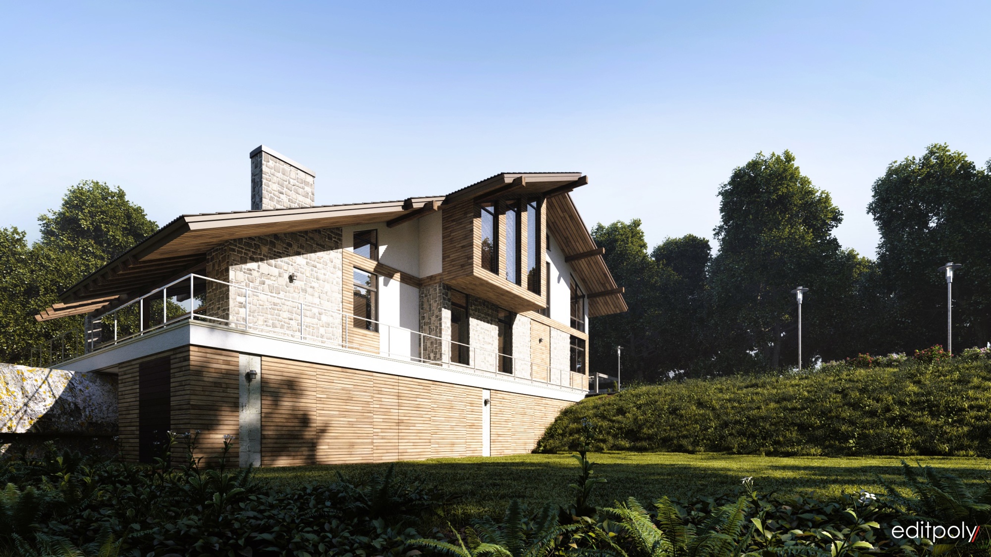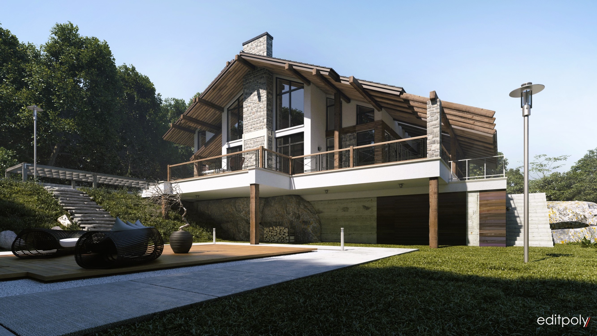 Разработка архитектурной концепции, моделирование и 3d визуализация загородного дома в стиле шале