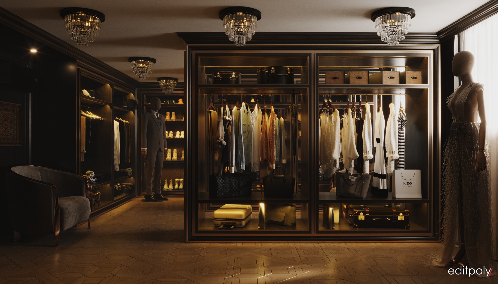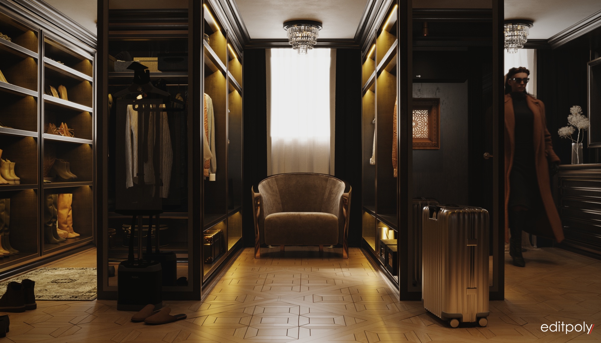 Разработка концепции, моделирование и 3d визуализация интерьера гардероба в неоклассическом стиле